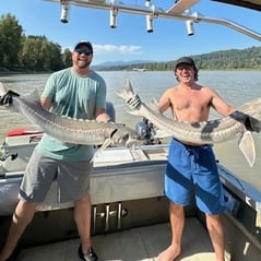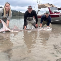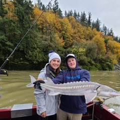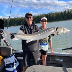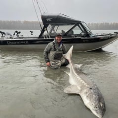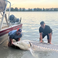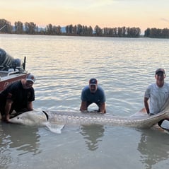Sturgeon fishing is an exciting experience and a great activity for all skill levels. Whether you're spending time with friends or family, or on a corporate trip, you will enjoy thrilling fishing and scenic views. Our excursions take place near Vancouver, where beautiful mountains surround the Fraser River, home to some of the oldest and biggest sturgeons in the world.