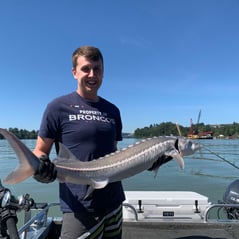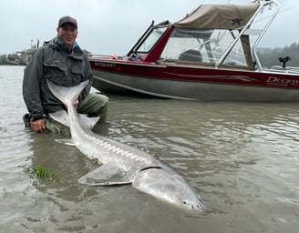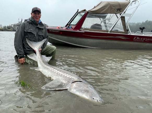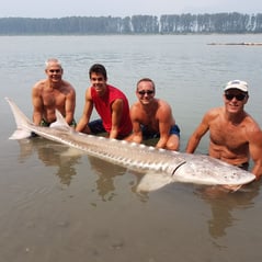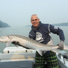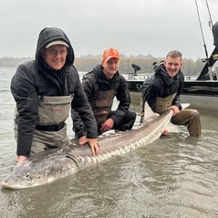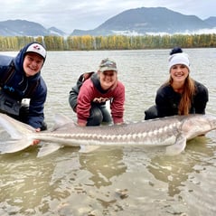 Sturgeon fishing is an exciting experience and a great activity for all skill levels. Whether you're spending time with friends or family, or on a corporate trip, you will enjoy thrilling fishing and scenic views. Our excursions take place near Vancouver, where beautiful mountains surround the Fraser River, home to some of the oldest and biggest sturgeons in the world.